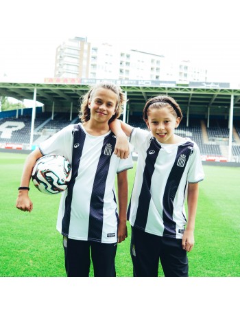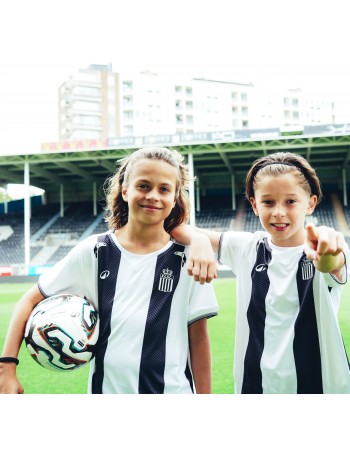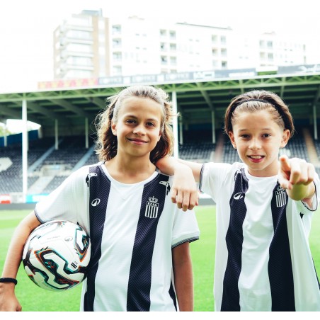 Le Sporting de Charleroi vous présente son maillot kids home officiel pour la saison 2025-2026, conçu par Kipsta. Il est principalement blanc avec des bandes rayées noires, qui sont les couleurs historiques de notre club. Fabriqué en coton, il offre un confort optimal à nos plus jeunes Zèbres. Disponible en taille 5-6, 7-8, 8-9, 10-11, 12-13 et 14-15 ans.