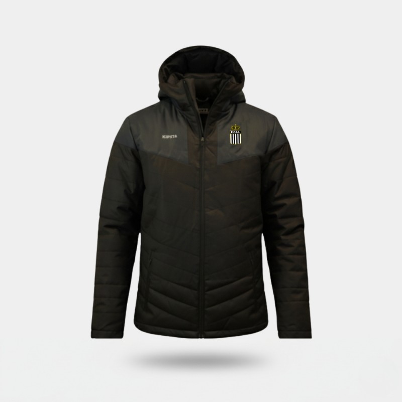 Veste d'hiver imperméable officielle pour la saison 2023-2024, conçue par Kipsta avec capuche et entièrement zippée. Cette veste ornée du blason zébré vous permettra d'affronter le monde extérieur par temps froid, pluvieux et/ou venteux.